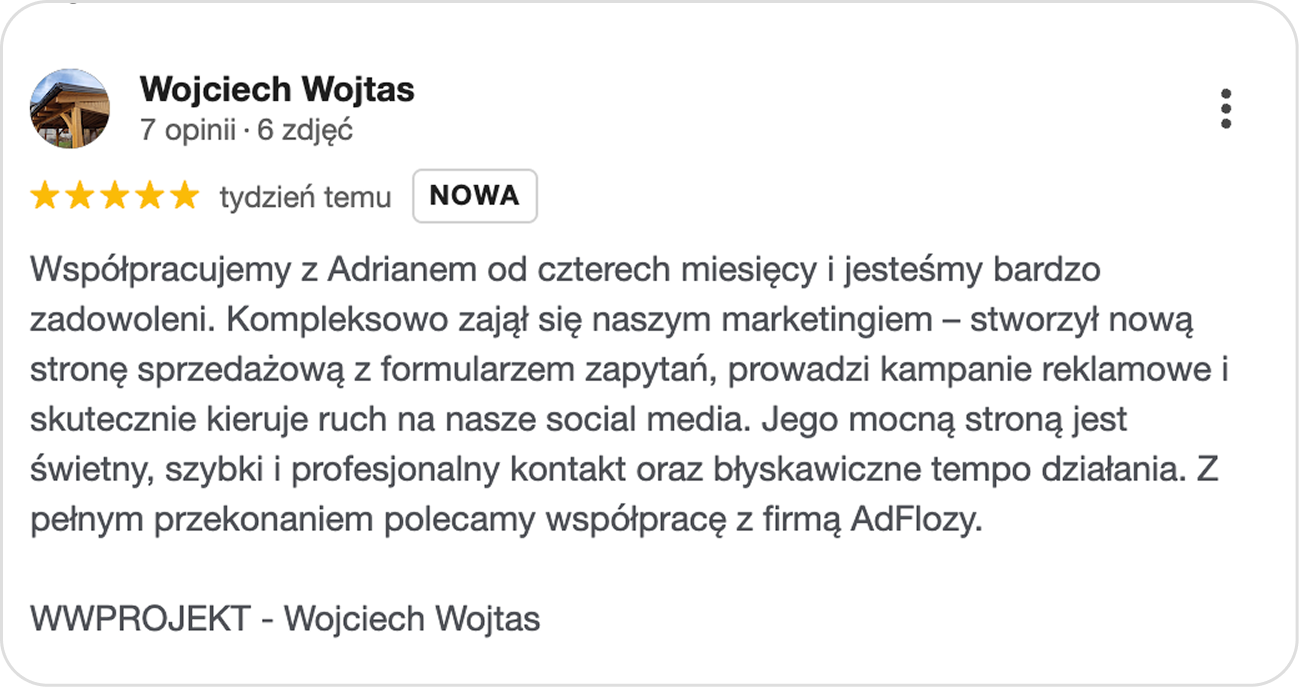 Dlaczego mamy taki limit? Ponieważ nie jesteśmy wielką korporacją, która obsługuje setki klientów automatycznie. Każdy System LeadFlozy wdrażamy osobiście, poświęcając czas na dokładną konfigurację Twoich reklam i strony. Aby utrzymać wysoką jakość i dowieźć obiecane wyniki, musimy fizycznie ograniczyć liczbę firm, z którymi pracujemy w tym samym czasie.
