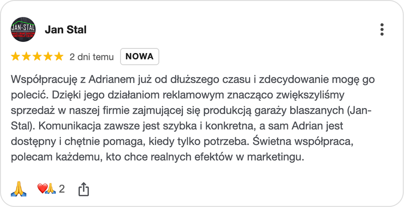 To nie jest magia, tylko matematyka. Stosujemy metody sprawdzone w branży stalowej, które działają dla innych producentów. Mamy twarde dane, które pokazują, że ten system regularnie dostarcza klientów, a opinie Naszych klientów tylko to potwierdzają.