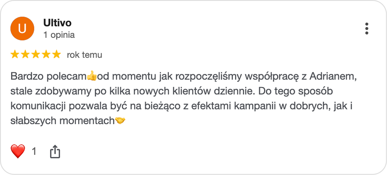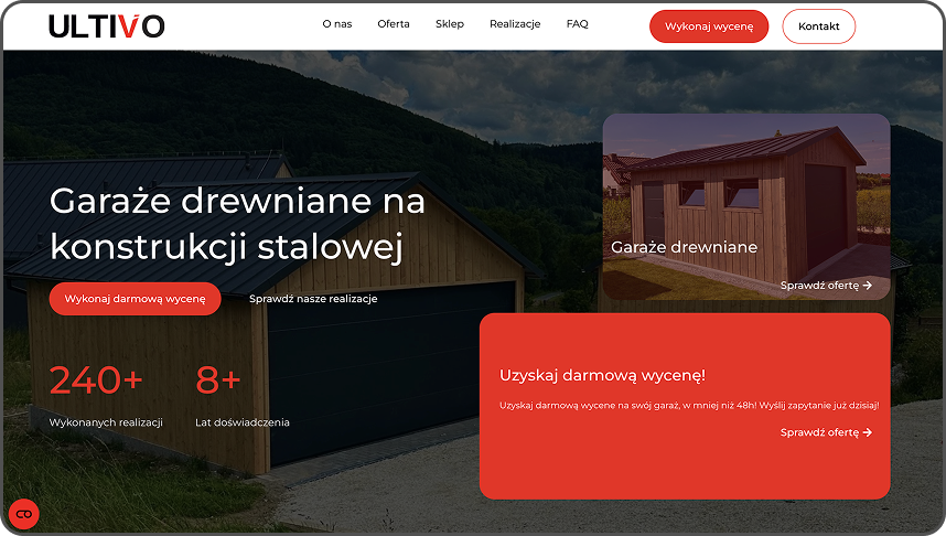 Zbudowaliśmy w Ultivo kompletny system sprzedaży: nową stronę nastawioną na konwersję, mocne kreacje wideo i stałe kampanie Meta + Google. Dzięki temu sprzedaż rośnie i trzyma poziom również poza sezonem, bez „pauzy” w zamówieniach.