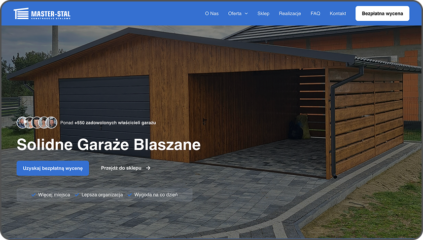 W Masterstall zbudowaliśmy i dopracowaliśmy cały system pozyskiwania zamówień: strona nastawiona na konwersję, spójna komunikacja w social media i stałe kampanie Meta + Google. Dzięki temu firma od ponad roku trzyma stabilny poziom sprzedaży i regularny dopływ zamówień.